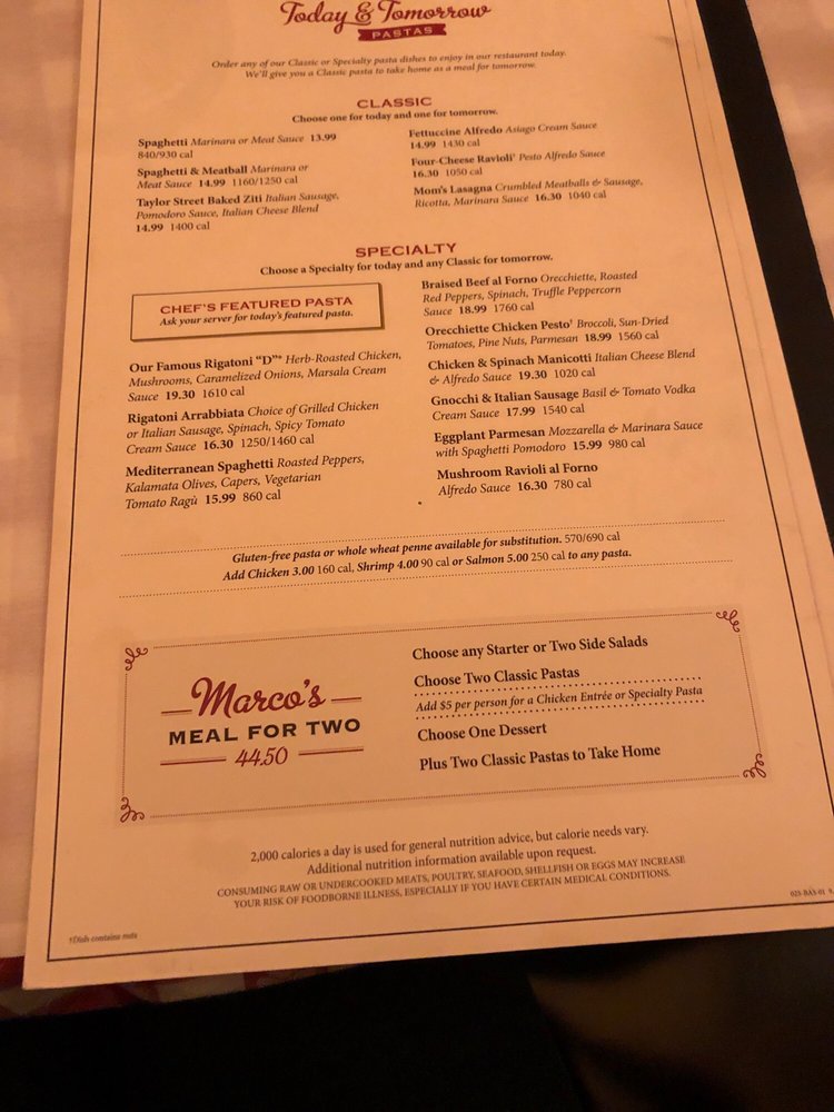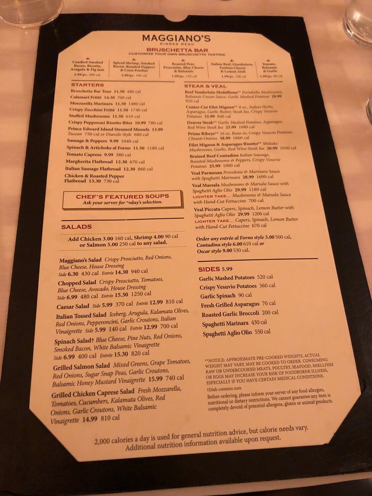 Maggiano S Little Italy Nutrition Facts And Calories Menu With Nutrition
